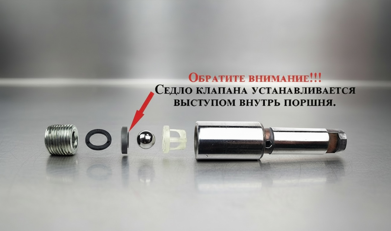 При сборке на резьбу клапана поршня необходимо нанести фиксатор резьбы, предварительно обезжирив поверхности фиксируемой резьбы - для исключения выкручивания клапана во время работы.