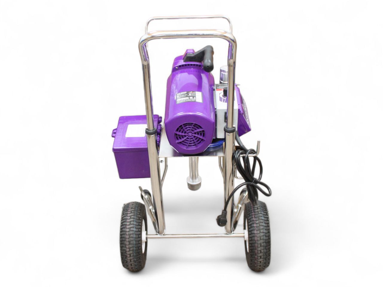 Под действием электрического поршневого насоса лакокрасочное покрытие подается через шланг на распылитель для краски. Преимущество безвоздушного электрического окрасочного аппарата: низкая цена, мобильность и легкость аппарата, простота конструкции и легкость в обслуживании.