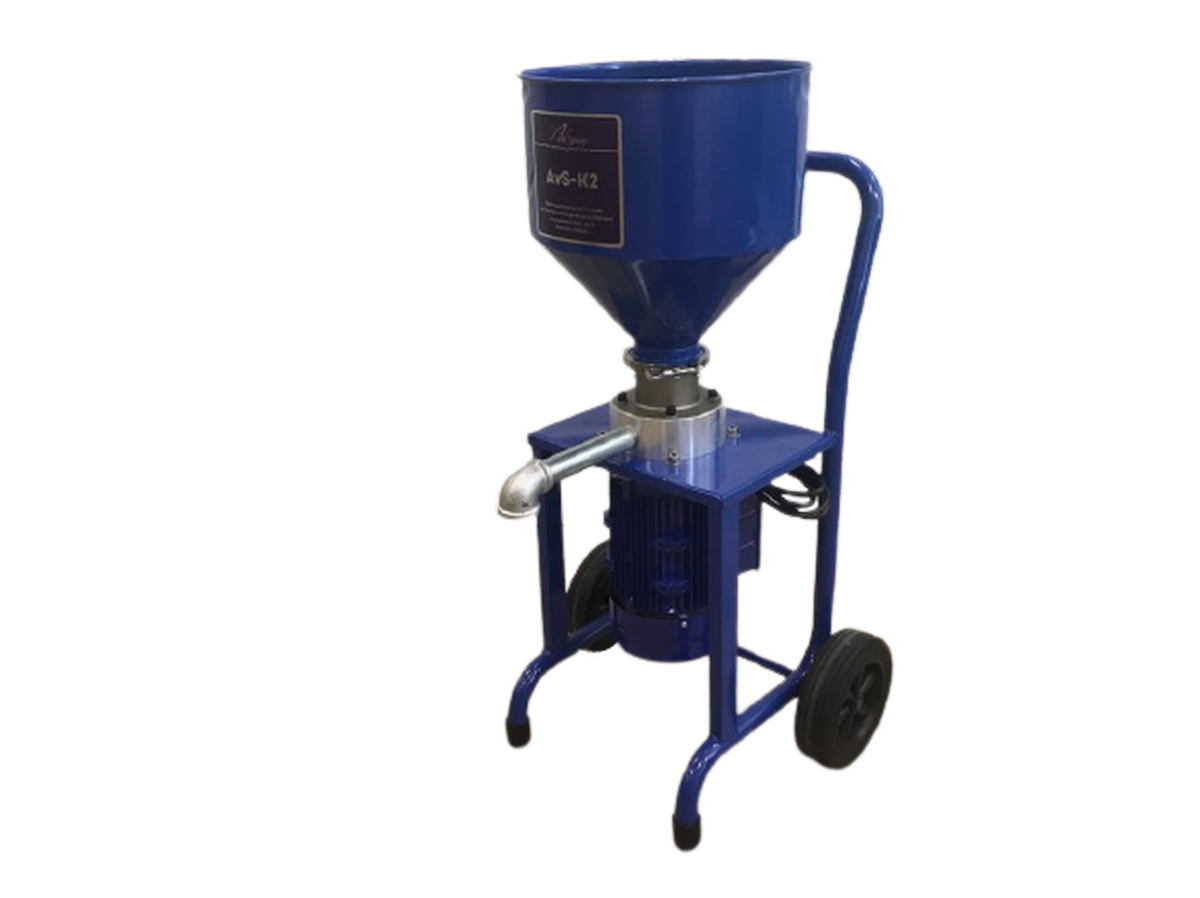 Краскотерка AvS-K2 представляет собой агрегат с асинхронным электродвигателем 2,2кВт и мельницей, установленными на колесную раму. Сверху устанавливается быстросъемный бункера для материала на мельницу, к которой присоединен патрубок выхода ЛКМ. Электродвигатель установлен снизу, и приводит в движение ротор. мельницы.
