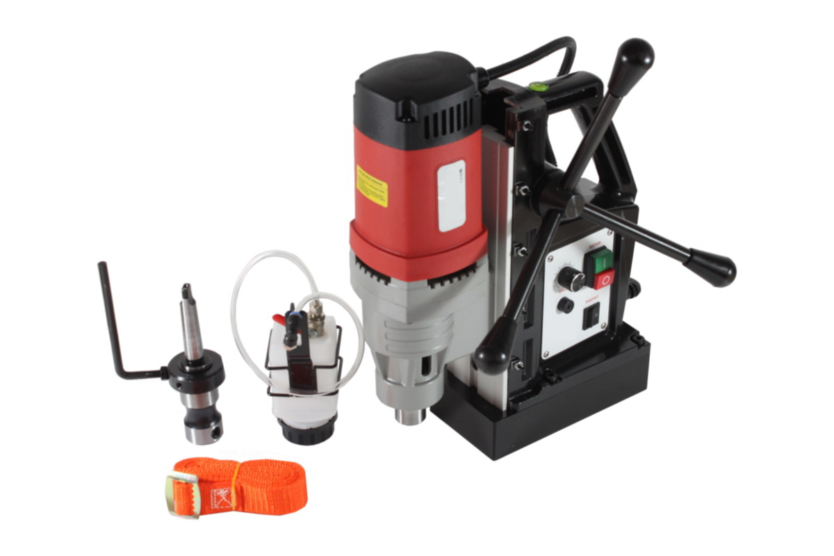 Мощный и надежный магнитный сверлильный станок с диаметром сверления до 50 мм корончатым сверлом.