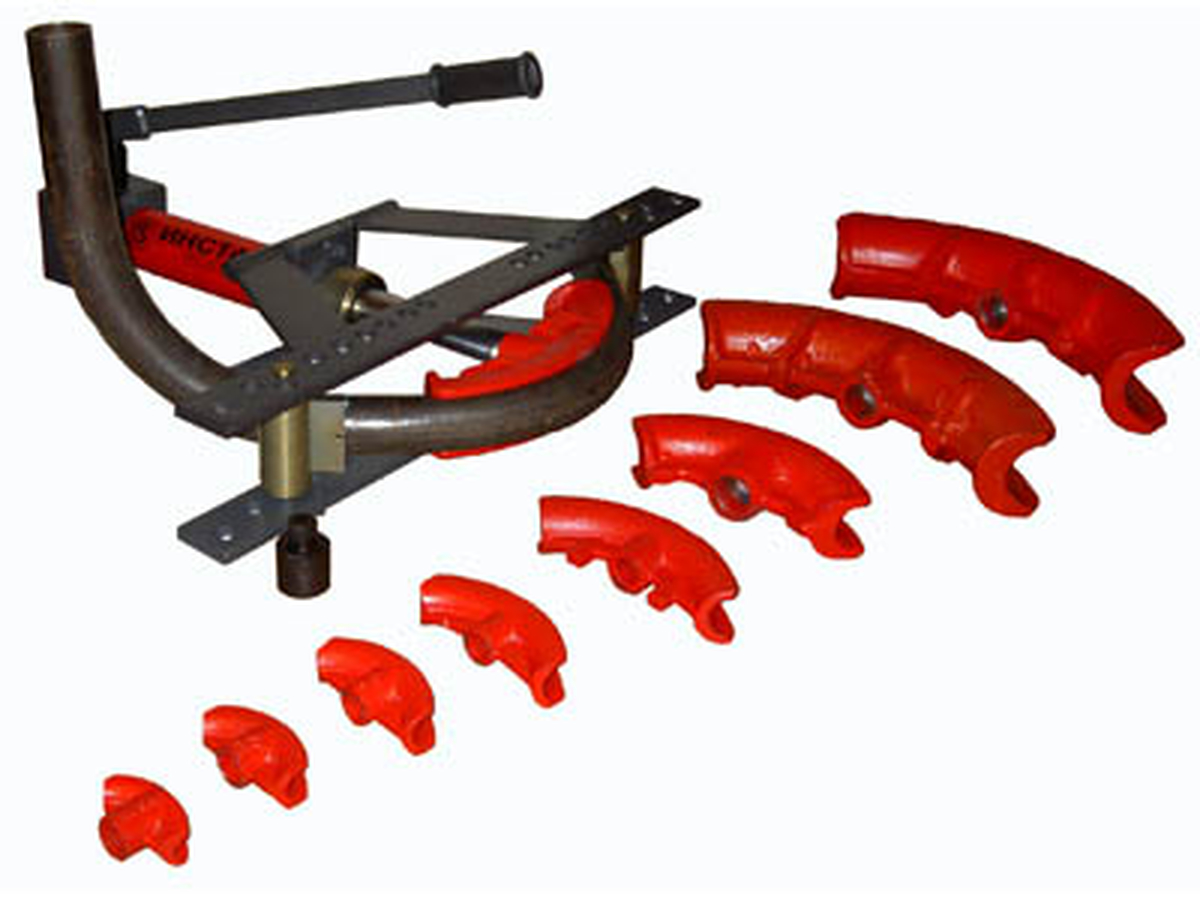 Трубогиб гидравлический переносной предназначен для гибки водо-газопроводных труб по ГОСТ 3262-75, а также проката круглого сечения, прочностные характеристики которого не превышают характеристик трубы 3" (условный проход 80мм).