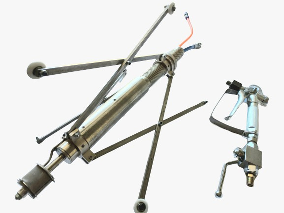 Оборудование для нанесения покрытий на внутренние стенки трубы типа NKP-2-1 вместе с безвоздушным окрасочным аппаратом может использоваться для распыления внутри различных труб, внутренний диаметр которых составляет Ø = 300 – 900 мм.